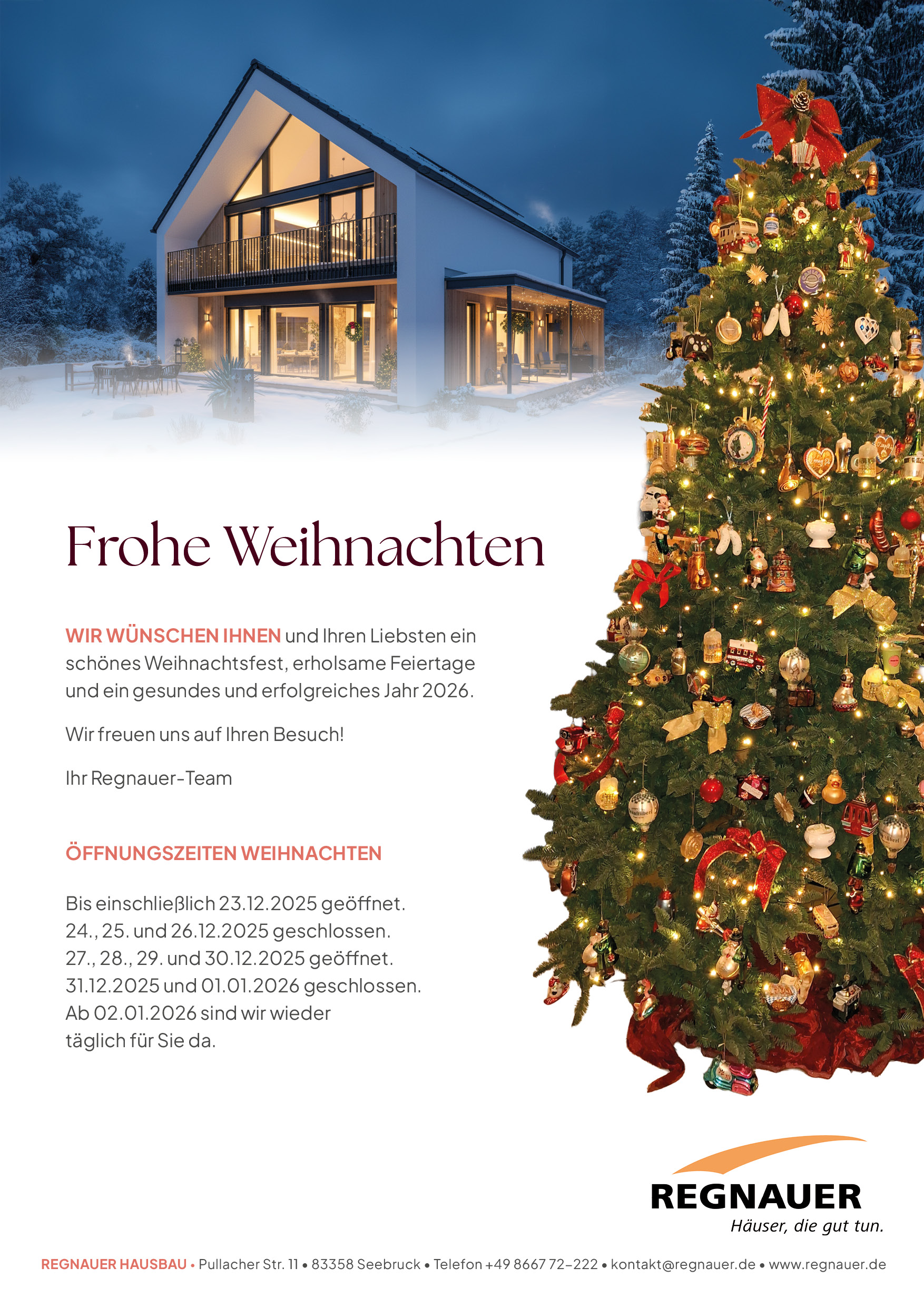 Das Regnauer Bauherrenzentrum Seebruck und unsere Musterhäuser sind wieder täglich von 10-18 Uhr für Sie geöffnet, auch samstags und an Sonn- und Feiertagen.