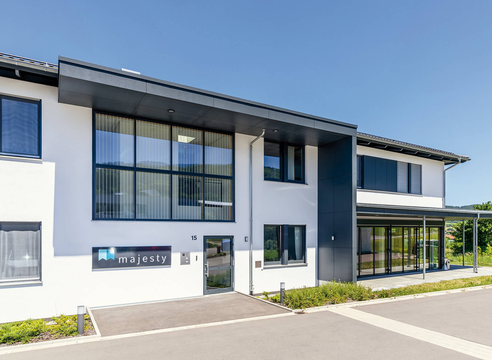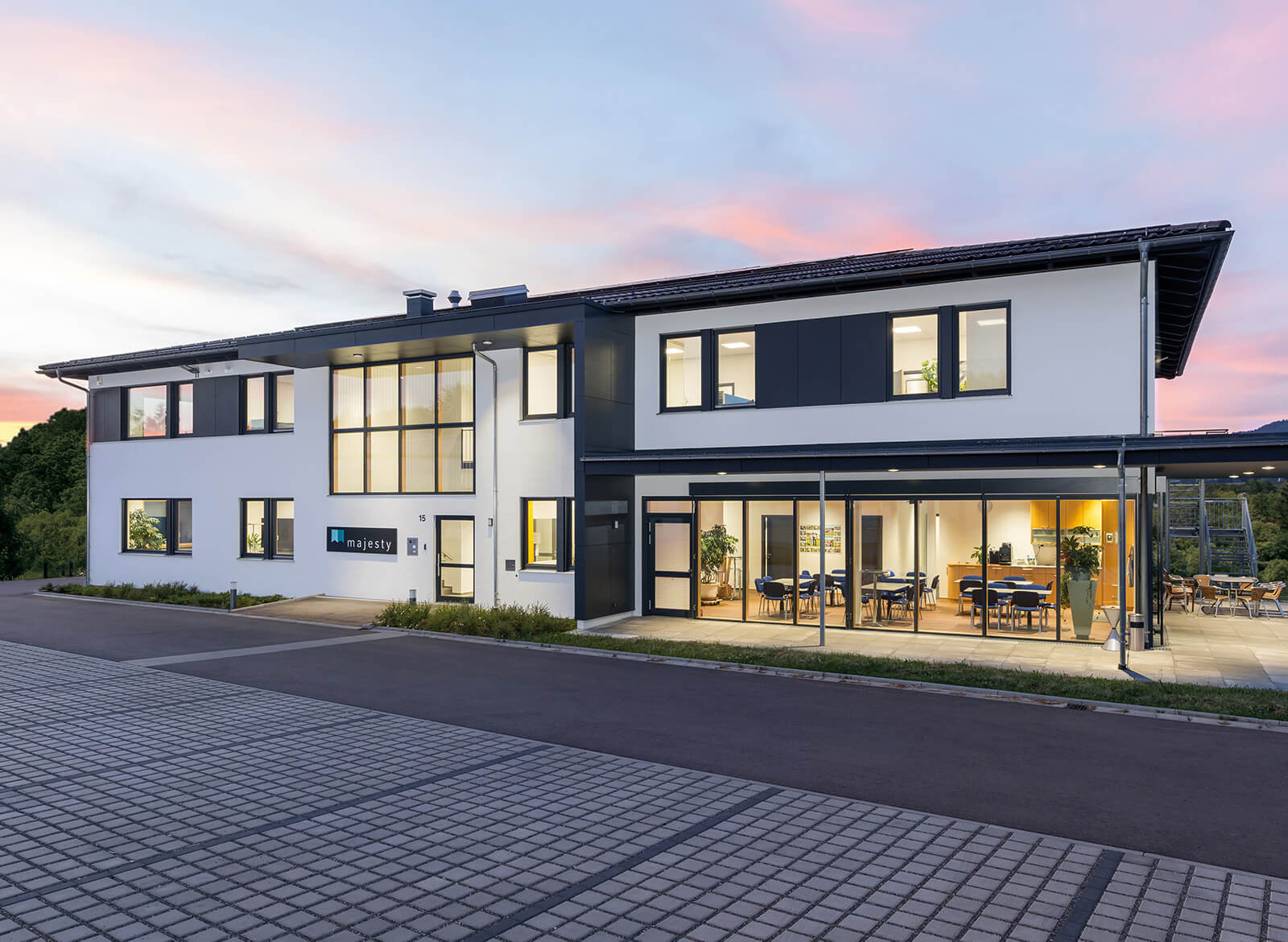 Das ERP-System Majesty für Medizintechnik und zerspanende Industrie wird aktuell von über 7.000 Anwendern bei etwa 600 Kunden zur Unternehmens- und Fertigungssteuerung erfolgreich eingesetzt. Dazu leisten die Teams im neuen Gebäude Software-Entwicklung, Implementierungsberatung, Schulung und Support. Entsprechend wurde das Raumprogramm für diese Tätigkeitsprofile ausgerichtet. Zusätzlich sorgen Cafeteria, ein Freizeit-Raum und eine überdachte Terrasse für hohe Aufenthaltsqualität.
